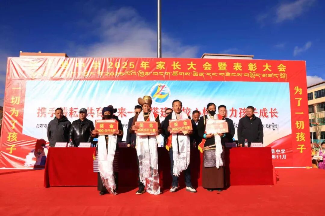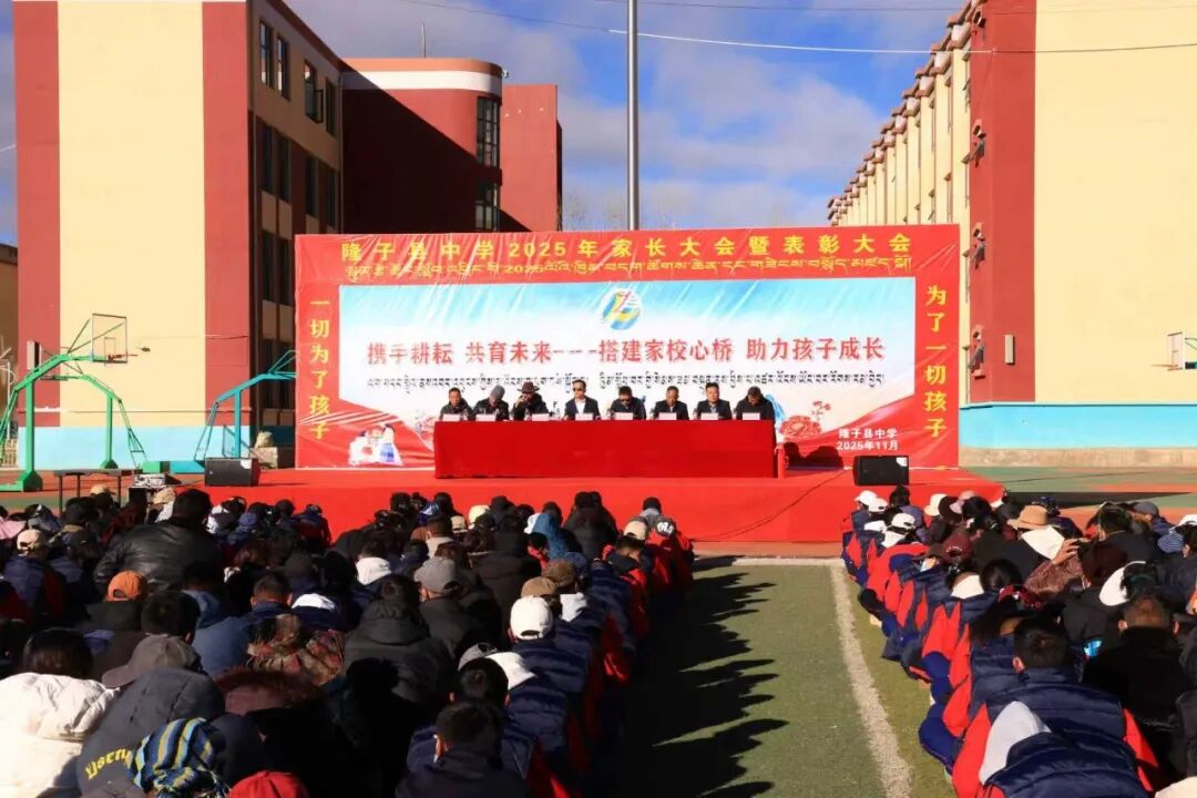 近日,隆子县中学在篮球场举行2025年家长会暨表彰大会。县委常务副书记、常务副县长崔晓伟出席并讲话,县委常委、政府常务副县长欧珠出席会议,县委常委、副县长杨三建主持会议。县教育局局长洛桑尼玛及学校师生、家长代表共同参会,围绕育人工作交流探讨,展望未来成长蓝图。