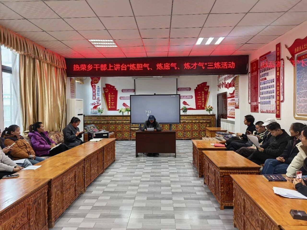 4月10日,热荣乡组织全乡在家党员干部,开展第一季度“炼胆气、炼底气、炼才气”党员干部上讲台活动。
