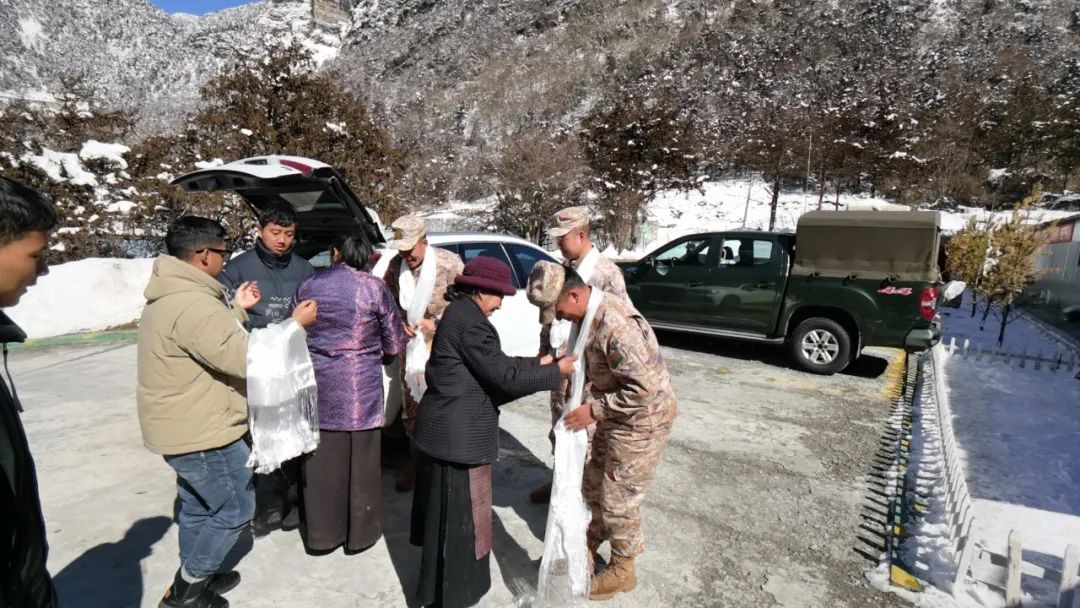 2月10日,“时代楷模”卓嘎、央宗姐妹开展走访慰问活动,为玉麦乡各单位、行政村及驻地部队送去新年祝福,并送上慰问金。