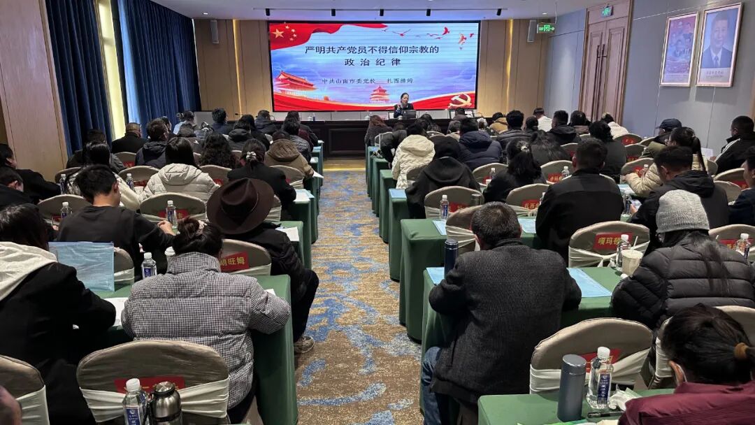 培训特邀市委党校高级讲师王春华、扎西措姆及县纪委监委骨干霍洪运同志授课,围绕中央八项规定精神、党员教师宗教信仰纪律、教育系统党风廉政建设等主题,通过理论解读与案例分析相结合的方式,强化教师纪律意识。专题研讨环节,参训教师聚焦“网络时代的师德边界”热议,达成“线上有尺度、言行有示范”的共识,明确需维护职业形象与教育公信力。此外,全体学员观看《师德师风警示教育片》,进一步筑牢依法执教、廉洁从教的思想防线。
