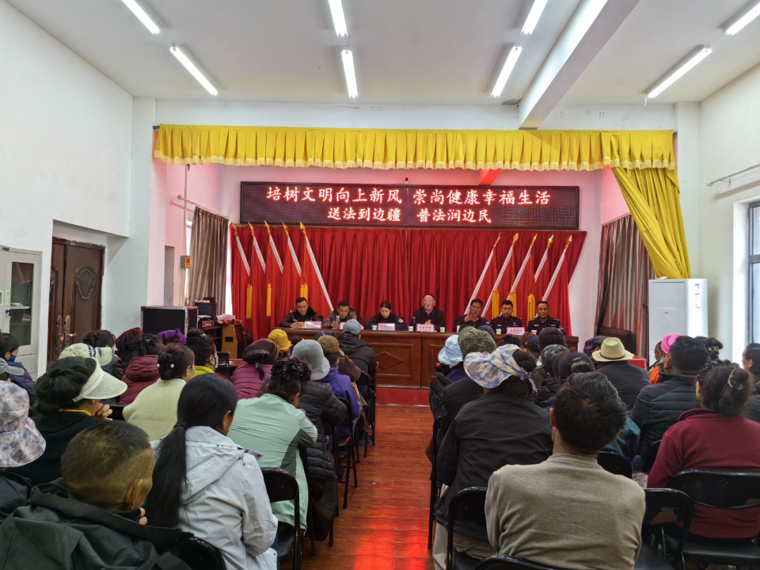在县委、县政府的统一部署下,11月3日至11月13日,由县政协主席古桑旦增带队,县普法办牵头,抽调县委统战部、县公安局政保、网安大队、外办、边境管理大队骨干力量组成普法宣讲队,深入6个边境乡镇,以“培树文明向上新风 崇尚健康幸福生活之送法到边疆 普法润边民”为主题,展开了覆盖广泛、内容翔实的法治巡回宣讲13场,受教育群众达1447人。