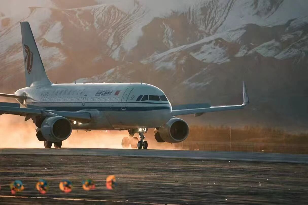 (图为隆子机场飞机落地场景)
