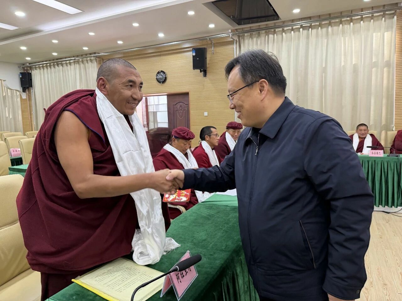 田卫斌强调,要扛牢责任聚合力,把宗教工作与中心工作同谋划、同部署、同落实,及时研究解决困难问题。持续完善寺庙人、财、物管理制度,扎实推进全面从严治教。加强寺管会干部队伍、宗教界代表人士队伍建设,为推进藏传佛教中国化提供人才支撑。