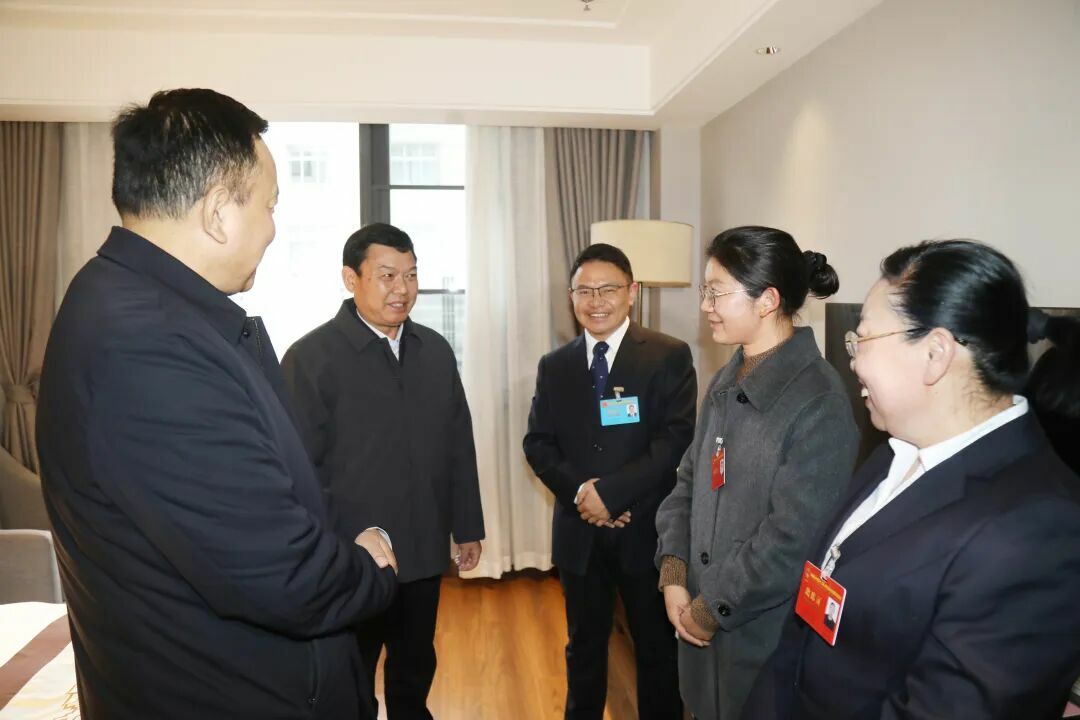 图为李富忠等亲切看望出席自治区两会的我市人大代表和政协委员。