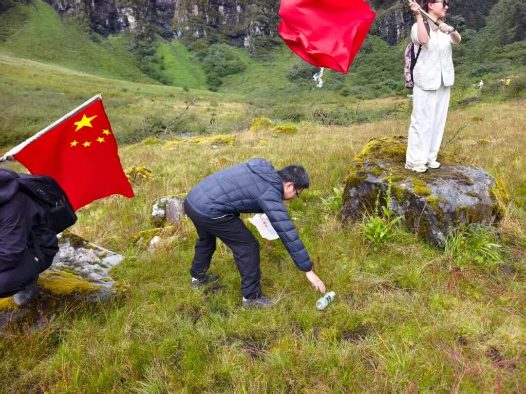 活动现场,卓嘎、央宗姐妹走在队伍最前列,以“向导”身份带领参与者追寻父辈足迹。行进途中,卓嘎、央宗与参与者一同在沿途插挂国旗,鲜红的旗帜在边境山野间迎风飘扬,在补给站休息时,两姐妹结合自身经历讲述“家是玉麦,国是中国”的动人故事,让每一位参与者在脚步丈量国土的过程中,深切感受“守边为民”的初心与担当。