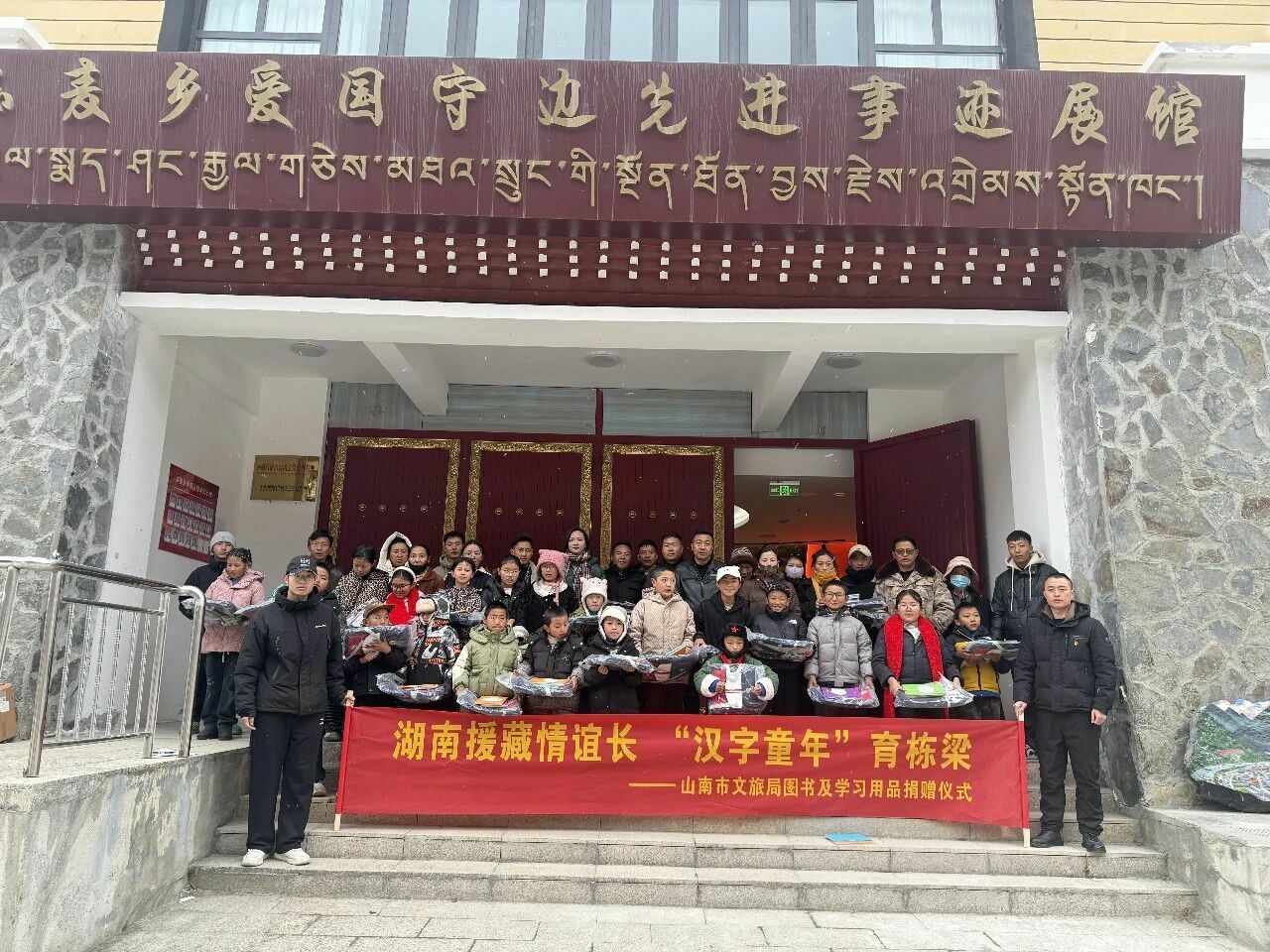 1月12日,玉麦乡举办“湖南援藏情谊长 ‘汉字童年’育栋梁”图书及学习用品捐赠仪式,为学生发放90册图书、30个书包。
