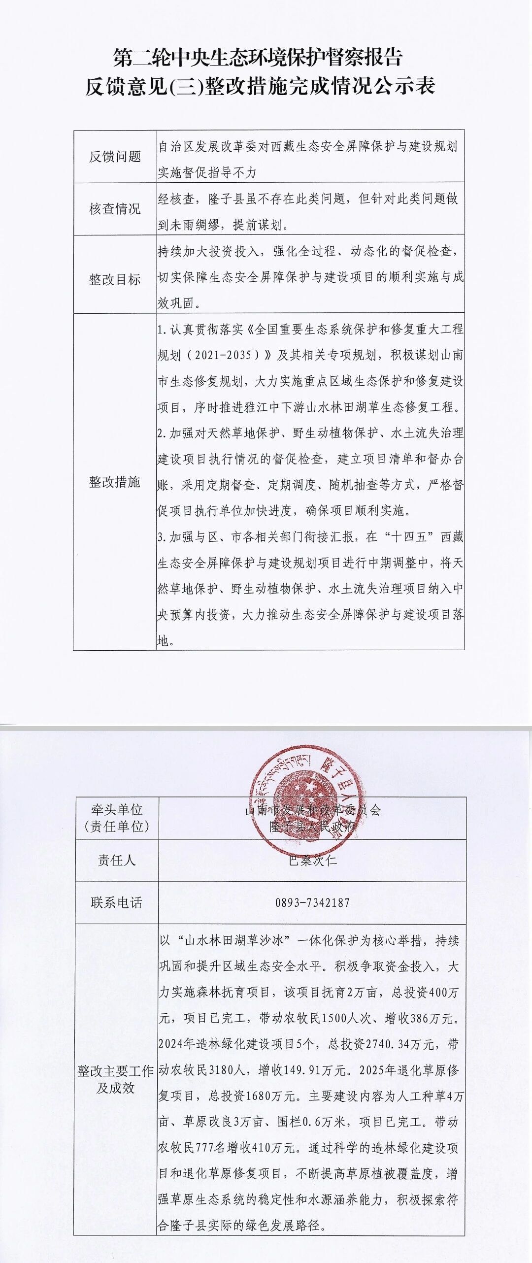 第二轮中央生态环境保护督察报告反馈意见(三)整改措施完成情况公示表